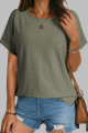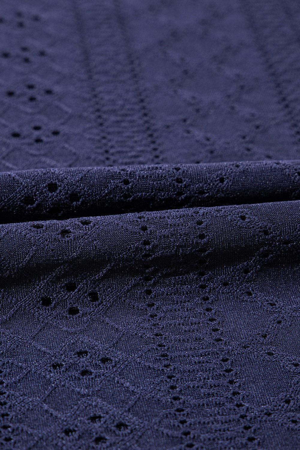 Temno moder enobarven žakard top s kratkimi rokavi in ročaji