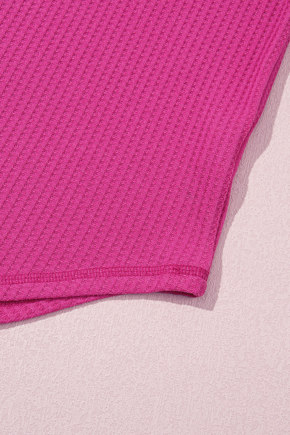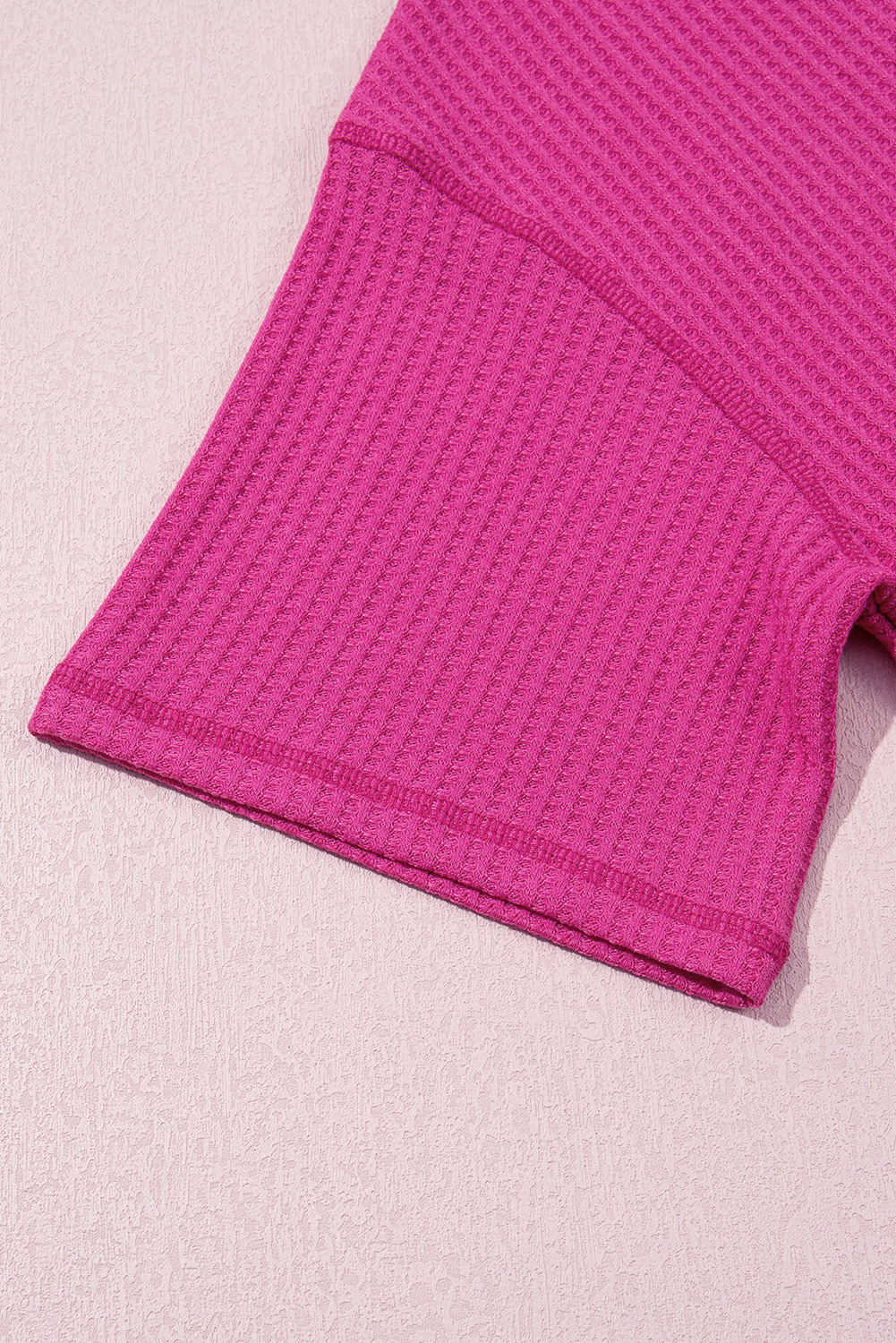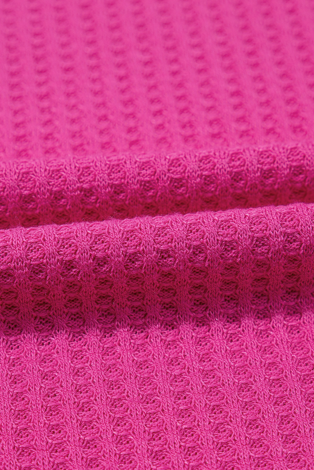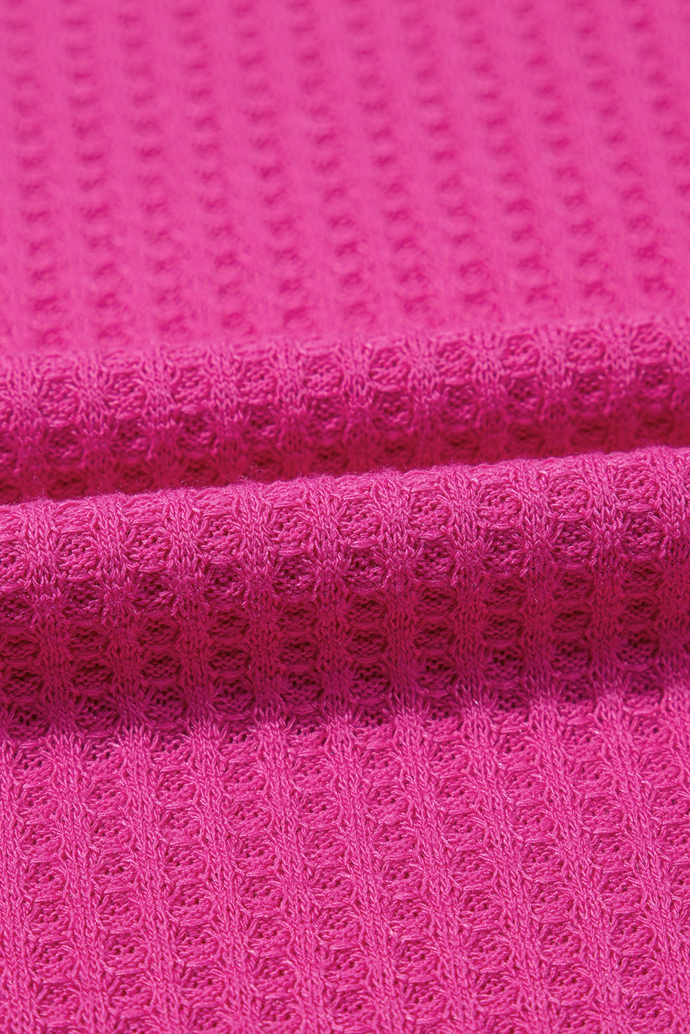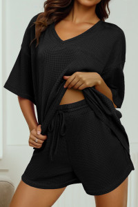 Komplet kratkih hlač z vrvico in rose rdečo enobarvno majico z izrezom v obliki črke V